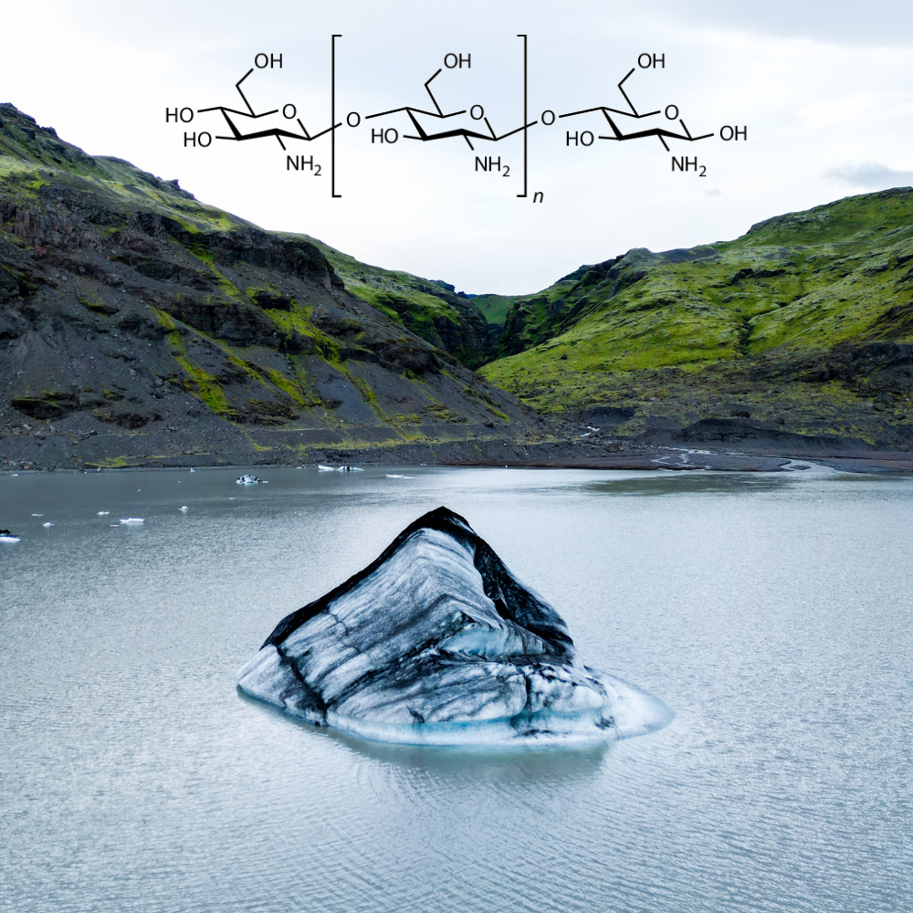 Chitosan is a natural biopolymer derived from chitin, which is found abundantly in nature. It is valued in medical and cosmetic fields for its biocompatibility and regenerative properties.